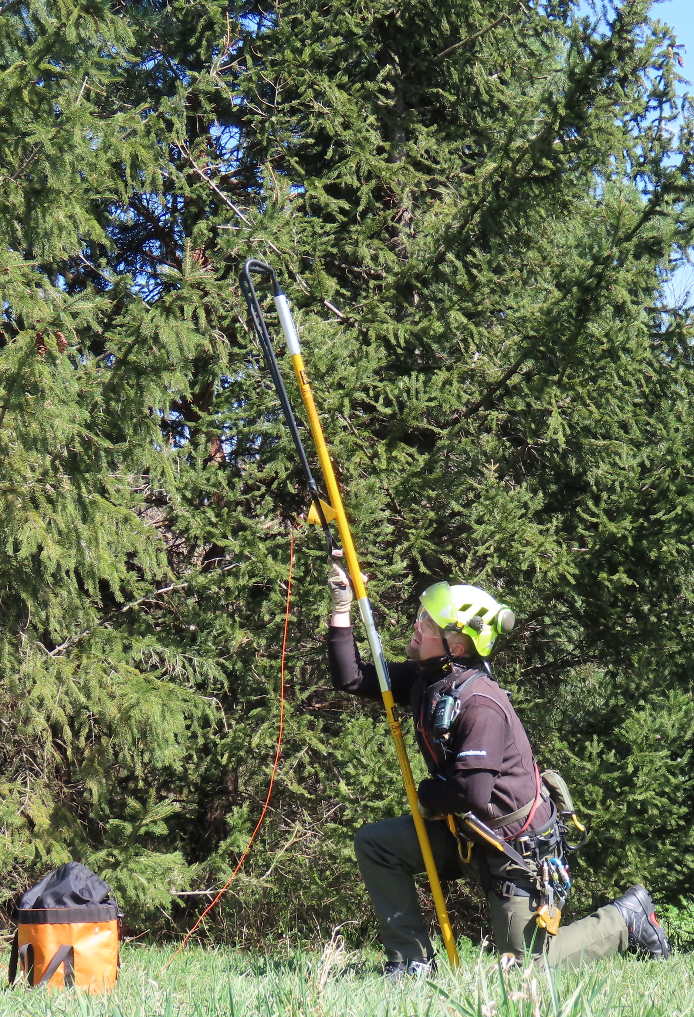 instalace lana do koruny stromu pomocí praku pracenalane.cz riz